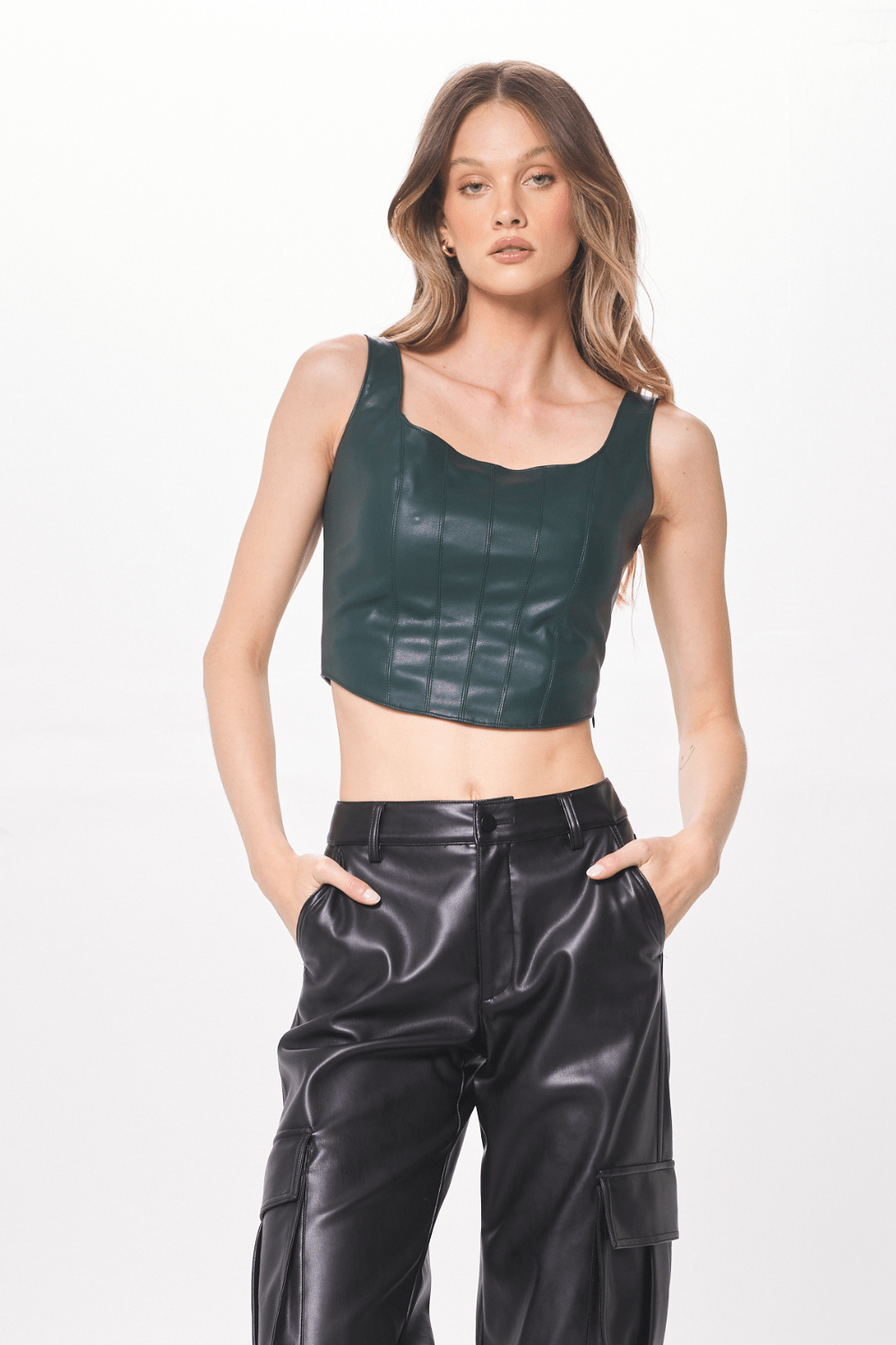 Forest Green Faux Leather Corset